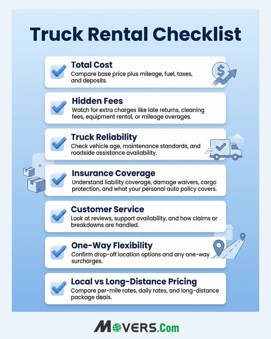 Long-distance moves shift the priorities in a different direction. When traveling hundreds of miles, reliability becomes far more important than small pricing differences. Mechanical issues on a long trip can cause serious disruptions, which is why dependable fleets and strong roadside support matter more.